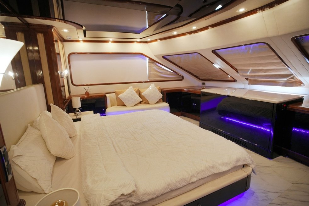 Inside, Benetti 110 FT delivers a high-end, well-appointed living space tailored for comfort and style. The yacht typically offers multiple cabins — including a master suite, VIP cabins, and guest/twin cabins — all with en-suite bathrooms, ensuring privacy and convenience for overnight stays. A spacious salon, dining area, and a fully equipped galley add to the comfort, making the yacht suitable for extended cruises as well as day trips. The interior décor, furnishings and layout tend to reflect refined taste, combining elegance with functionality.