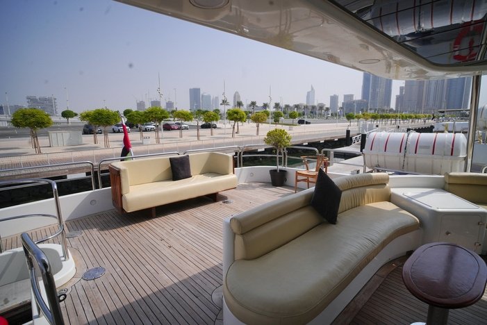 Outside and overall, the Benetti 110 FT is designed to cater to both intimate gatherings and larger social events. Its decks, sun-loungers, possible flybridge or sundeck areas give guests a chance to relax, sunbathe, enjoy views or host celebrations. Whether for a serene cruise, a small family outing, or a luxury event with friends, this yacht stands out for its versatility, comfort, and classic yachting charm — making each journey a stylish and memorable experience.
