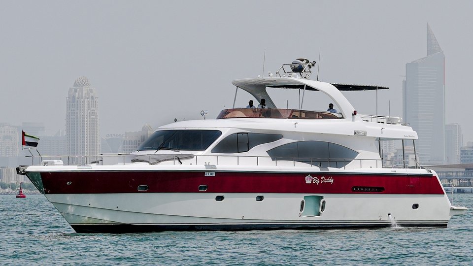 The Big Daddy 90ft is a striking luxury yacht that masterfully blends size, style, and comfort. At 90 feet long (about 27.4 m), it offers ample space for guests — often accommodating up to around 55–65 people depending on the charter configuration. Its exterior design features a spacious flybridge and open decks that make it perfect for cruising waterfront city skylines, enjoying sea breezes, relaxing in the sun, or hosting social events under the open sky. ivers a comfortable, versatile, and elegant living experience. The interior typically includes multiple cabins (often four), lounge/salon areas, a dining/kitchen space, and bathrooms — enough to comfortably host overnight stays or multi-hour excursions. The yacht is equipped with modern amenities such as a music/home-theatre system, soft-drink and water supply, sometimes even BBQ or grill facilities, and air-conditioning — ideal for parties, gatherings, or leisure cruising.