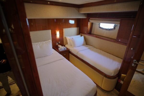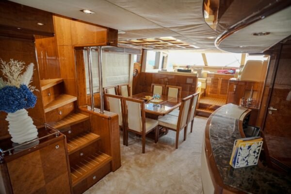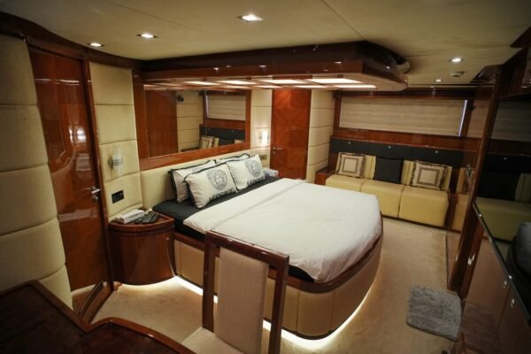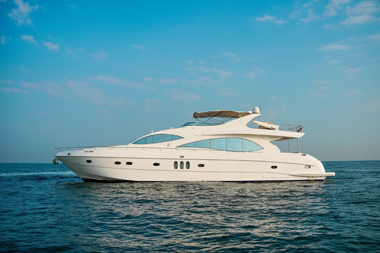 Whether for family cruising, corporate events, or unforgettable sea escapes, the Majesty 88 Hamdan promises a superior yachting experience. With powerful engines, impressive stability, and spacious entertainment areas, it is built for smooth navigation and effortless enjoyment on the water. This yacht combines modern luxury with timeless craftsmanship, making it an ideal choice for those seeking elegance, performance, and unforgettable moments at sea.