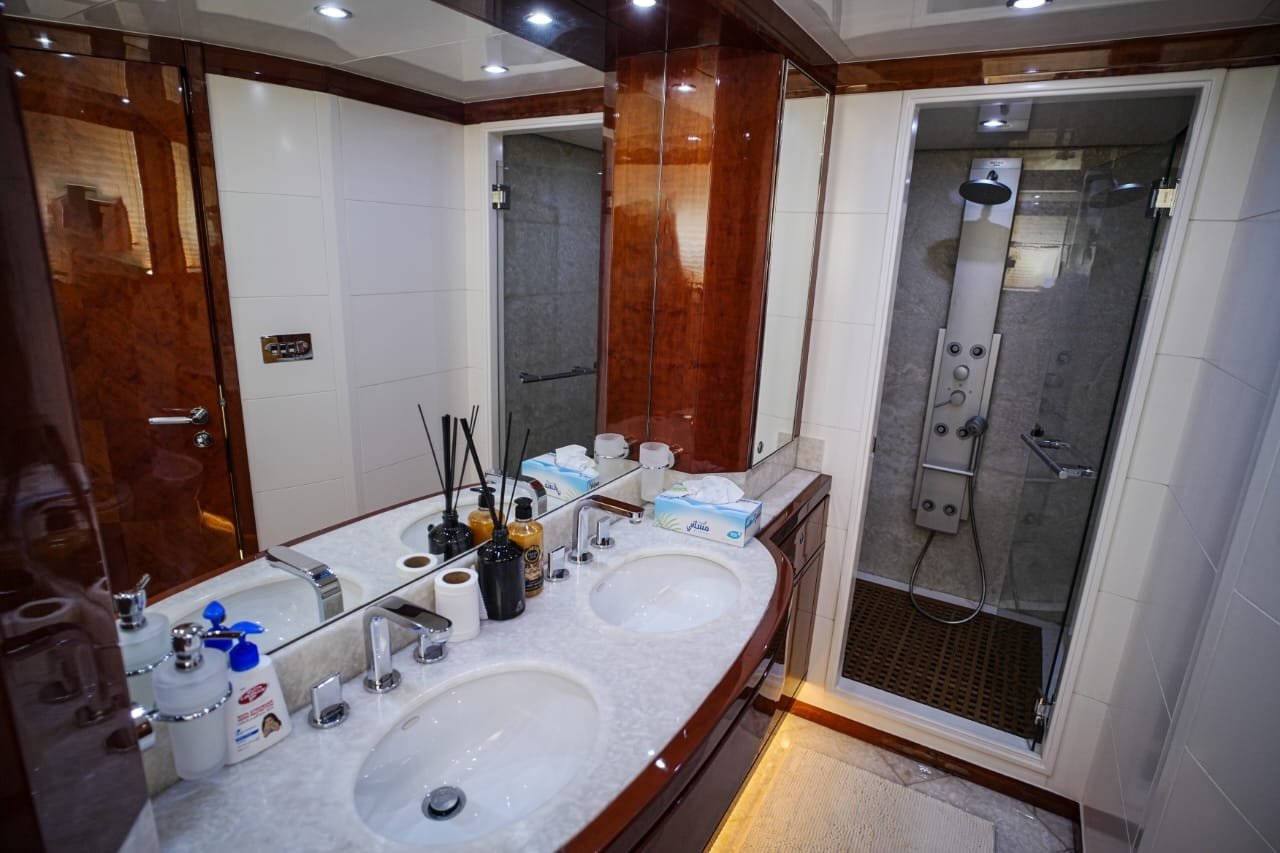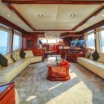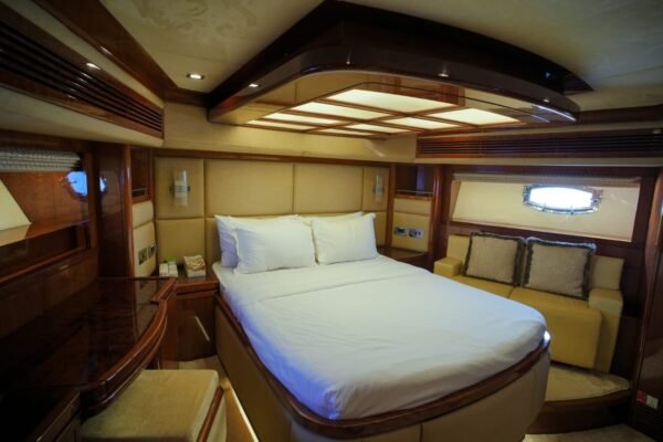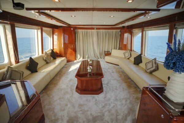 Step inside, and the Majesty 88 Hamdan reveals a world of refined luxury. The interior features high-quality furnishings, rich materials, and a beautifully designed layout that maximizes both comfort and functionality. A generous salon, multiple lounging areas, and elegantly finished cabins provide a serene environment where guests can unwind in complete privacy. Every element is thoughtfully curated to create a warm, inviting ambiance that feels like a floating five-star retreat.