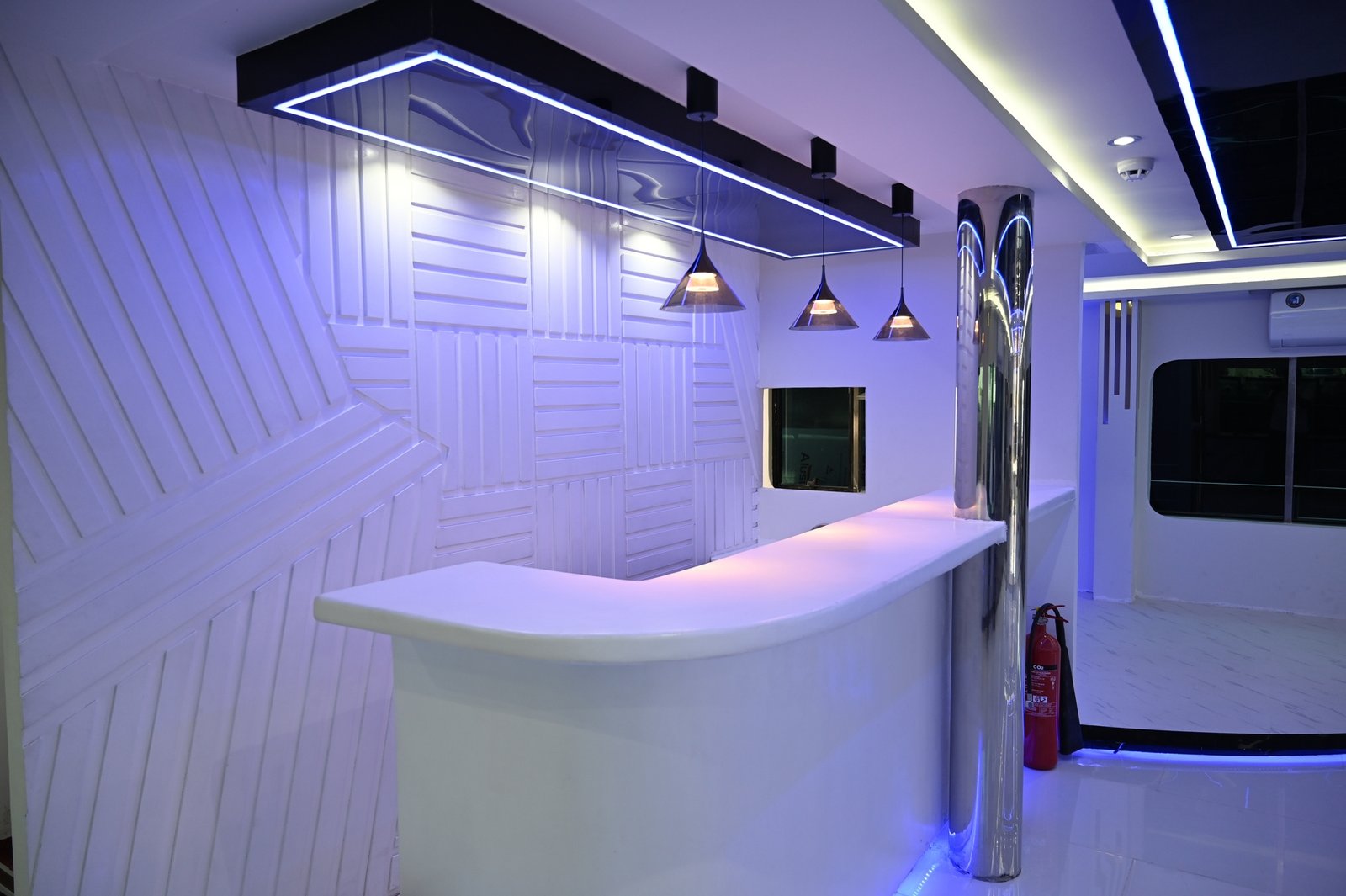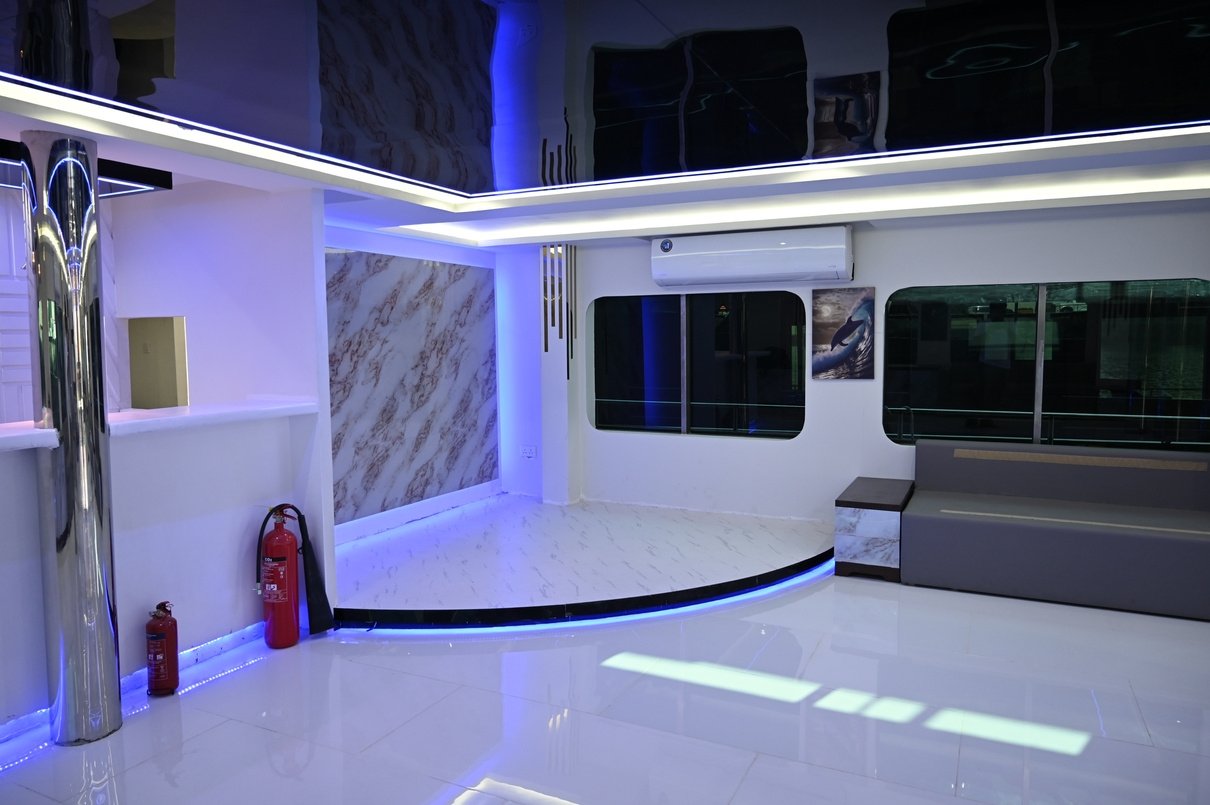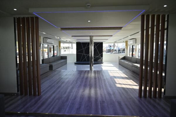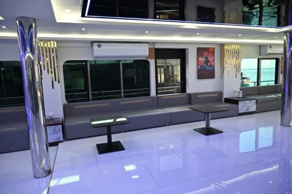 Inside, Royal Rave 140FT features a comfortable and well-designed interior that blends elegance with practicality. It typically includes multiple cabin spaces, modern washrooms, air-conditioned lounges, and stylish seating areas that allow guests to relax in comfort. With entertainment-ready facilities, sound systems, refreshments, and optional dining arrangements, the yacht ensures a smooth and enjoyable experience for everyone on board.
