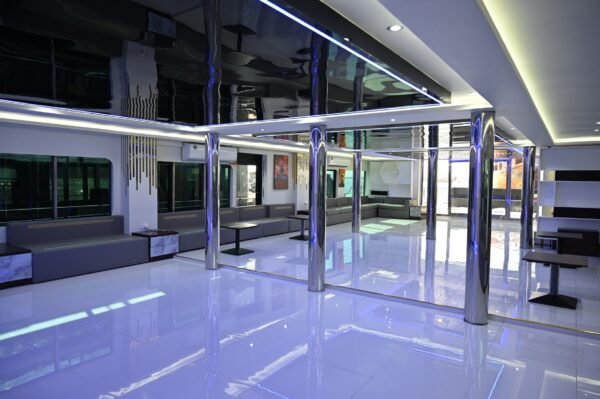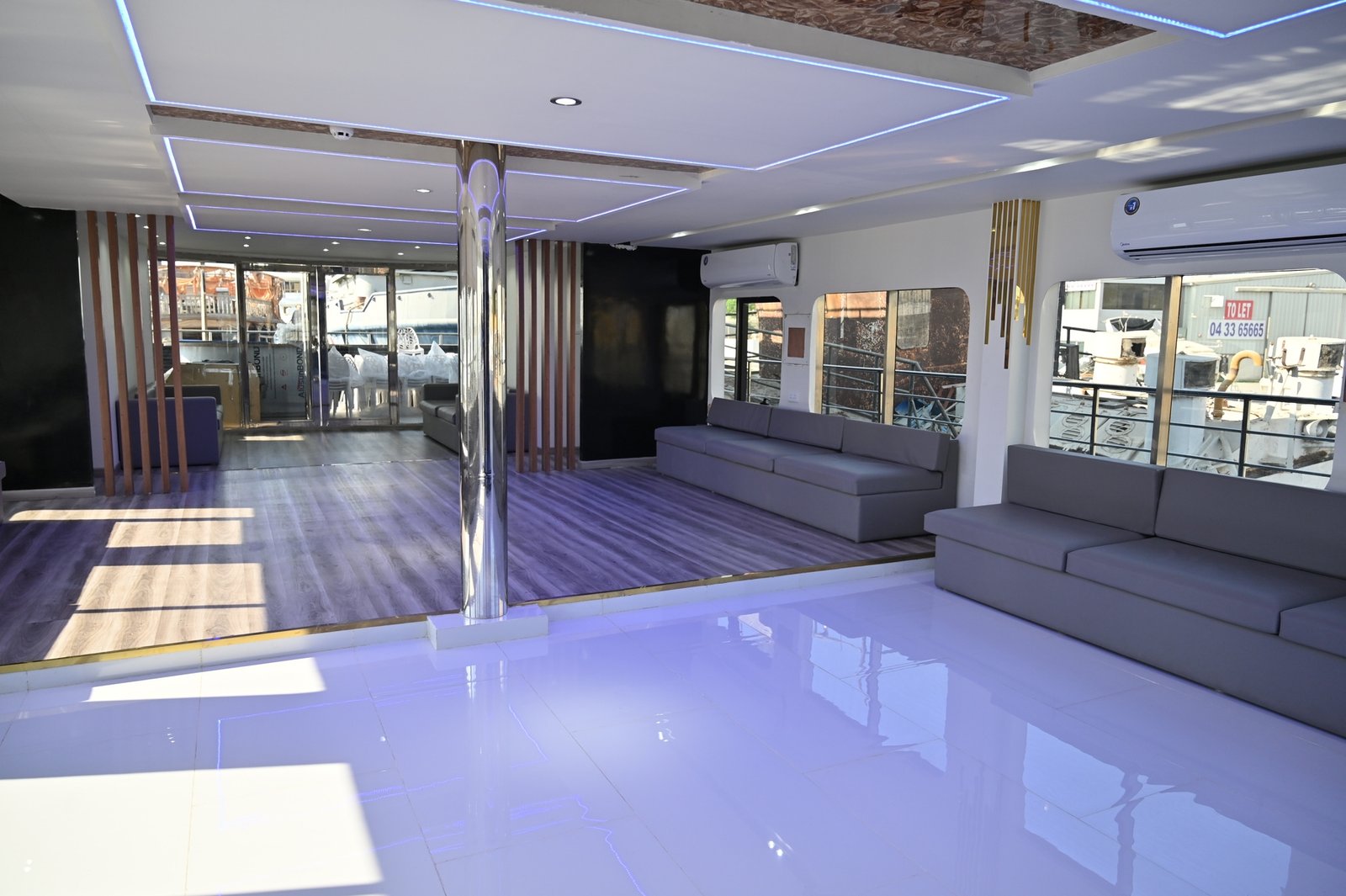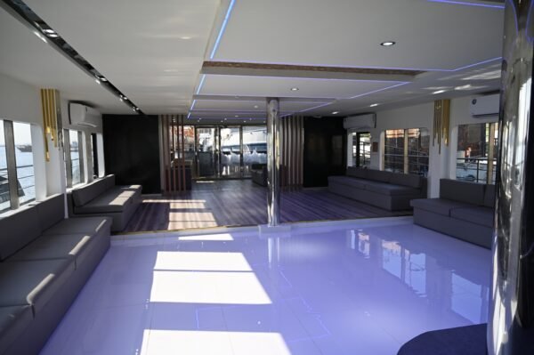 Its impressive size and striking exterior make an immediate impact, offering wide open decks, a spacious flybridge, and plenty of room for guests to enjoy panoramic ocean views. The yacht’s generous layout makes it ideal for events, parties, and memorable group experiences on the water.